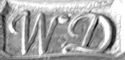 | W D | 1746 | Spoon | Possibly either William Davie or William Dempster This mark not listed by EAOEdinburgh Assay Office Marks Archive |