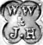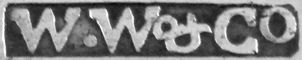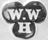 | W W | 1989..2004 | Caddy spoon, candlestick, corkscrew, frame, toast rack | One item marked "Whitehill", but is not Whitehill Silver & Plate Co |