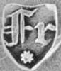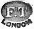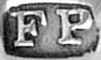 | Francis Powell | 1818..1840 (registered May 1818) | Decanter label, spoon | A similar mark registered Nov 1843 by Francis Pontet |