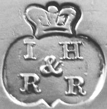 | I E over W F | 1816..1843 | Basket, bowl, cruet, cup, ladle, mug, mustard, salt, salver, tea service | Note: mark appears to be identical to that of Edwards & Frisbee, but the dates are not in accord with the partnership dates given by GrimwadeGrimwade, Arthur - London Goldsmiths, 1697-1837: Their Marks and Lives, Faber & Faber, 1990 (Apr 1791 to Jan 1792). Frisbee died in 1820. |