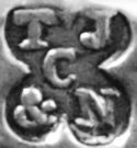 This mark is not shown in the Sheffield RegisterWatson, B.W. - The Sheffield Assay Office Register, Wm Townsend & Sons, Sheffield, 1911, but has been seen with Law's "T·LAW" mark | 1796..1807 | |||