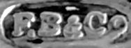 | Ferguson & MacBean (probably) | 1902 | Rim of wooden quaich | Mark also includes "INVSS". A similar mark with serifs registered by Ferguson & MacBean for Sheffield, 1892. |