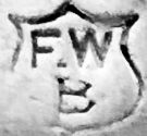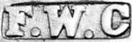 | F W | 1898..1912 | Box, cigar case, purse, wallet mounts | A similar London & Chester mark for this period registered by Frederick Wich, leather goods manufacturer, Great Titchfield Street, London |