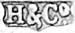 ![]() (image courtesy of David Mercer) | H & S | 1901 | Match striker | A similar incuse mark without the lozenge registered Chester & London Assay Offices by Hart & Sons |