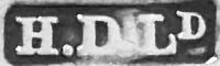 ![]() | Hubert Hall | 1919..1931 (registered Mar 1914) | Box, flask | Crisp-JonesCrisp-Jones, Kenneth, ed. - Silversmiths of Birmingham and Their Marks, 1750-1980, Robert Hale, 1981 lists this maker as Herbert Hall; the Chester CompendiumRidgway, Maurice H. & Priestley, Philip T. - The Compendium of Chester Gold & Silver Marks 1570 to 1962, Antique Collectors' Club, 2004 has Hubert Hall and shows this mark the other way up, but the mark is used as shown, with the indent at the bottom. |