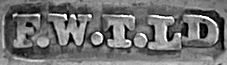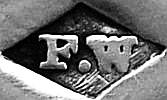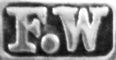 | F W | 1898..1912 | Box, cigar case, purse, wallet mounts | A similar London & Chester mark for this period registered by Frederick Wich, leather goods manufacturer, Great Titchfield Street, London |