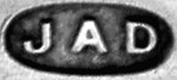 | J B J | 1902..1930 | Box, creamer, cup, decanter label, fob medal, menu holder | |