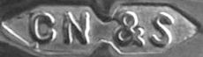 ![]() (image courtesy of www.acsilver.co.uk) | Reid & Sons (Christian John Reid) | 1883..1885 (registered Sep 1885) | Fork, spoon | Note: 1883 example was overstamped on another mark so probably used during transition from closure of Newcastle Assay Office in 1883 to registration in London. |