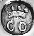 ![]() | C O | 1705..1718 | Box, porringer, pounce pot, saucepan | "Not traced" - GrimwadeGrimwade, Arthur - London Goldsmiths, 1697-1837: Their Marks and Lives, Faber & Faber, 1990 |