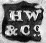 | Henry Wilkinson & Co | 1831..1848 (registered Sep 1831) | Basket, bookmark, bowl, box, candlestick, chamberstick, claret jug, coaster, condiment jar lids, decanter label, dish, egg cruet, flatware, fruit knife, ink stand, napkin ring, pepperette, salt, salver, snuffer tray, tea caddy, toast rack, tray | Wilkinson & Co went into liquidation in 1892 and was bought by Walker & Hall but their mark continued to be used |